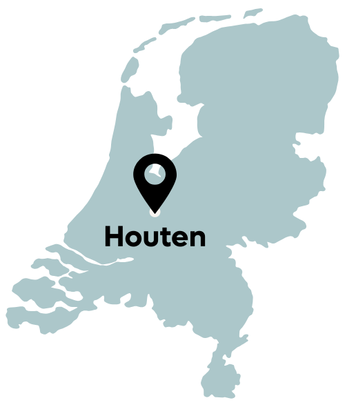 Houten ligt zeer centraal in Nederland, met slechts op 13,5 km afstand van Utrecht Centraal, of slechts 9 minuten met de trein.